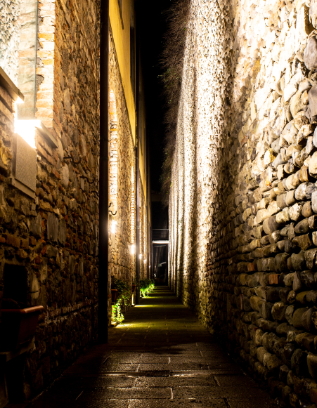Spazi interni ed esterni a ridosso delle mura storiche della città, all’interno di un luogo che coniuga archeologia industriale, arredamento moderno, immerso nei tessuti e in dettagli unici.